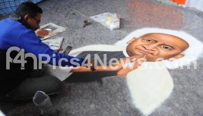 Event Description : An artist giving final touches to Former Deputy PM of India Sardar Patel art during his birth anniversary , in Bengaluru on Wednesday 31st October 2018