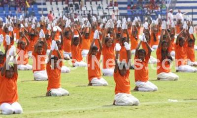 Children participated in the cultural programme during 63rd Kannada Rajyotsava Day (Karnataka State Formation day) function at Kanteerava Stadium, in Bengaluru on Thursday 1st November 2018