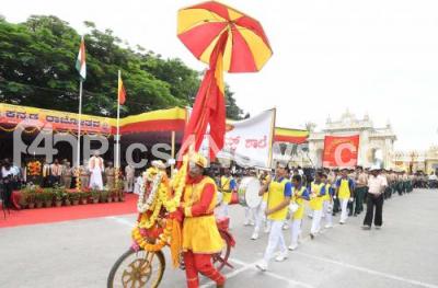 Event Description : Minister GT Devegowda with MLA Tanveer Sait inaugurated the cultural procession, police march past during the 63rd Kannada Rajyotsava Day (Karnataka State Formation day) program in Mysuru on Thursday 1st November 2018