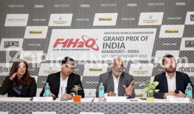 Event Description : Sandeep Mandava, CEO, India Xtreme, Adventure Activities with Srinivas Rao, CMO, AP Tourism, Govt of AP and Marco Pietrini, Director, Logistics, F1H20 during a press conference to announce "F1H20 World Championship" at a private hotel , in Bengaluru on Friday 2nd November 2018