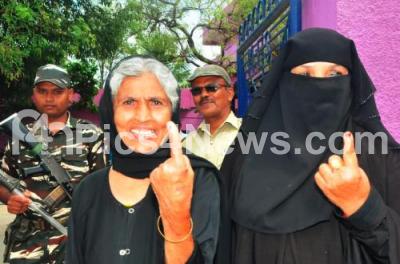 Photo Caption : People standing in the queue to cast their vote for the Ramanagar Assembly By Election at a polling booth, in Ramanagar on Saturday 3rd November 2018