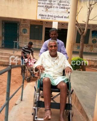 Photo Caption : Senior citizen arriving on wheelchair to cast their vote during Ramanagara assembly constituency By Election at a polling booth, in Ramanagar on Saturday 3rd November 2018
