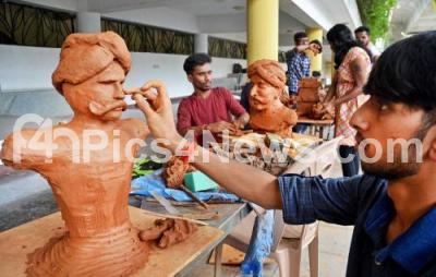 Photo Caption : Artists making sculpture during "Karnataka Kala Sambrama" painting exhibition and sale, live sculpture, folk dance and folk songs at Rangoli Metro Art Center, in Bengaluru on Sunday 4th November 2018