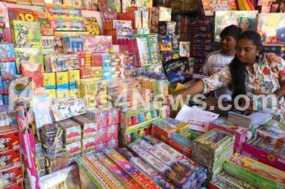 Photo Caption : People shopping for Diwali crackers on the eve of Diwali festival at Mallleshwaram , in Bengaluru on Monday 5th November 2018