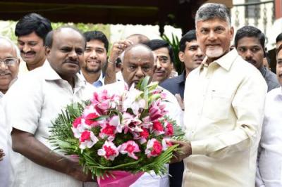 Chandrababu Naidu, CM of Andhra Pradesh called on HD Devegowda, JDS Supremo amd Former PM and HD Kumarswamy, CM OF Karnataka, in Bengaluru on Thursday 8th November 2018