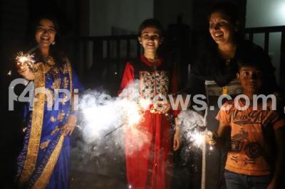 Photo Caption : People enjoying bursting colorful crackers during the Diwali Festival, in Bengaluru on Thursday 8th November 2018