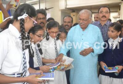 Photo Caption : Poet Dr HS Venkatesh Murthy, Writer Jogi distributing books to School children during book distribution programme organised by Sapna Book House, in Bengaluru on Saturday 10th November 2018