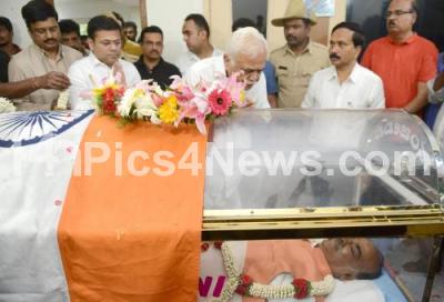 Photo Caption : Minister RV Deshpande paying last respect to Union Minister Ananth Kumar, who passed away in the early hours at a private hospital, in Bengaluru on Monday 12th November 2018