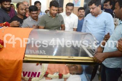 Photo Caption : Actor Puneet Rajkumar paying last respect to Union Minister Ananth Kumar, who passed away in the early hours at a private hospital, in Bengaluru on Monday 12th November 2018