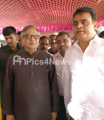 Photo Caption : BJP Leader SM Krishna and MLA Ashwath Narayana paying last respect to Union Minister Ananth Kumar, who passed away in the early hours at a private hospital, in Bengaluru on Monday 12th November 2018