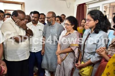 Photo Caption : CM HD Kumarswamy consoling Tejaswini Ananth Kumar,wife of Union Minister Ananth Kumar and daughter, Union Minister Ananth Kumar, who passed away in the early hours at a private hospital, in Bengaluru on Monday 12th November 2018