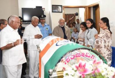 Photo Caption : PM Narendra Modi paying last respect to Union Minister Ananth Kumar, who passed away in the early hours at a private hospital, in Bengaluru on Monday 12th November 2018 Pics: www.pics4news.com