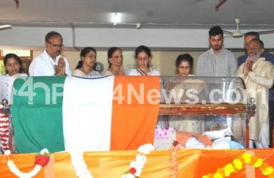Photo Caption : Tejaswini Ananth Kumar with his daughters Aishwarya Ananth Kumar, Vijeta Ananth Kumar and brother Nandakumar paying their last respect to Union Minister Ananth Kumar, who died on Monday due to prolonged illness , in Bengaluru on Tuesday 13th November 2018