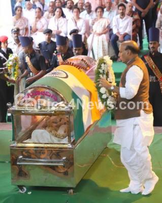 Photo Caption : Union Home Minister Rajnath Singh paying last respect to Union Minister Ananth Kumar at Chamarajpet burial grounds, Union Minister Ananth Kumar, died on Monday due to prolonged illness , in Bengaluru on Tuesday 13th November 2018