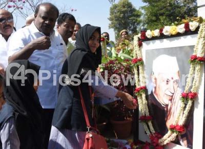 Photo Caption : CM HD Kumarswamy with children paid tribute to Pandit Jawaharlal Nehru on his birth anniversary and Children Day Celebration at Vidhan Soudha, in Bengaluru on Wednesday 14th November 2018