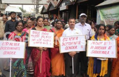 Event Description : Members of International Society for Poor and Down Trodden protesting and demanding for women entry in Ayyappa Temple in Sabarimala, the protest was held at Rajajinagar , in Bengaluru on Thursday 15th November 2018