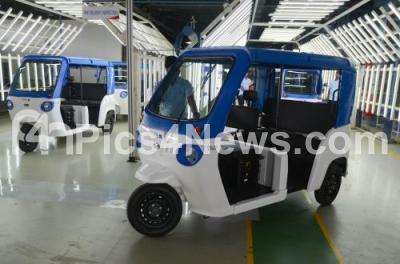 Photo Caption : An employee seen working on the newly launched Mahindra Electric “Treoâ€, electric 3 Wheeler range, which is the 1st Indian born electric 3 wheeler at the 1st Mahindra Electric Technology Manufacturing Hub in India at Mahindra electric Mobility Ltd, Bommasandra Industrial Area, in Bengaluru on Thursday 15th November 2018