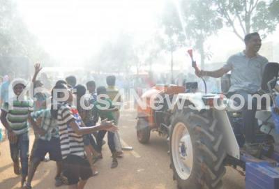 Photo Caption : Children enjoying the new sprinkler machines used for farming at the “Krishi Mela 2018†at GKVK, in Bengaluru on Saturday 17th November 2018