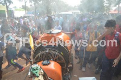 Photo Caption : Children enjoying the new sprinkler machines used for farming at the “Krishi Mela 2018†at GKVK, in Bengaluru on Saturday 17th November 2018
