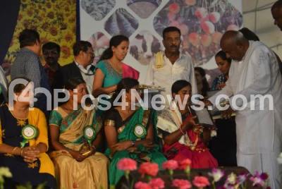 Photo Caption : JDS Supremo HD Devegowda with Minister Bandeppa Kashempur and others presented awards to farmers during the “Krishi Mela 2018 at GKVK, in Bengaluru on Saturday 17th November 2018