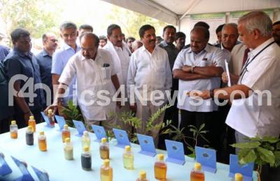 CM HD Kumarswamy with Minister Krishna Byre Gowda, Veerappa Moily, Senior Congress leader and others seen at the “Krishi Mela” at GKVK, in Bengaluru on Sunday 18th November 2018