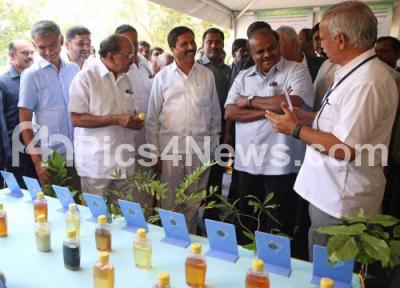 Photo Caption : CM HD Kumarswamy with Minister Krishna Byre Gowda, Veerappa Moily, Senior Congress leader and others seen at the “Krishi Mela†at GKVK, in Bengaluru on Sunday 18th November 2018