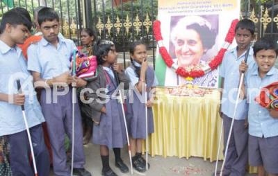 Photo Caption : Blind students participated in Former PM of India Indira Gandhi 101 birth anniversary at Anand Rao Circle , in Bengaluru on Monday 19th November 2018