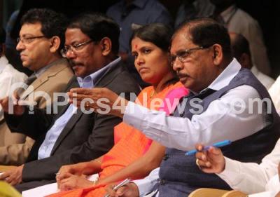 Photo Caption : DCM Dr G Parameshwar with Mayor Gangambike Mallikarjun, Manjunath Prasad, BBMP Commissioner seen at the BBMP Janspandana programme at Town Hall, in Bengaluru on Saturday 24th November 2018