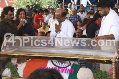 Photo Caption : Actor Rajanikanth paid last respect to Ambareesh , Veteran Kannada actor and former union minister Ambareesh (66), passed away at a Bengaluru private hospital on Saturday night where he was being treated for multiple ailments , in Bengaluru on Sunday 25th November 2018