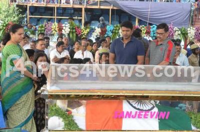 Photo Caption : Actor Puneeth Rajkumar and his wife paid last respect to Ambareesh , Veteran Kannada actor and former union minister Ambareesh (66) passed away at a Bengaluru private hospital on Saturday night where he was being treated for multiple ailments, in Bengaluru on Sunday 25th November 2018
