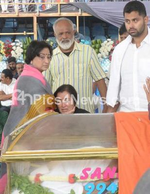 Photo Caption : Senior Actress Lakshmi consoling Sumalatha wife of Ambareesh and son Abhishek, Veteran Kannada actor and former union minister Ambareesh (66) passed away at a Bengaluru private hospital on Saturday night where he was being treated for multiple ailments, in Bengaluru on Sunday 25th November 2018