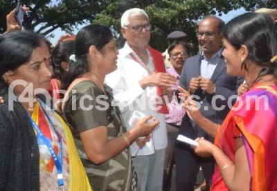 Photo Caption : BBMP Mayor Gangambike Mallikarjun interacting with protesting members of AITUC and BBMP Samparka Karyakarteyaru (call center workers) during their protest at BBMP, in Bengaluru on Wednesday 28th November 2018