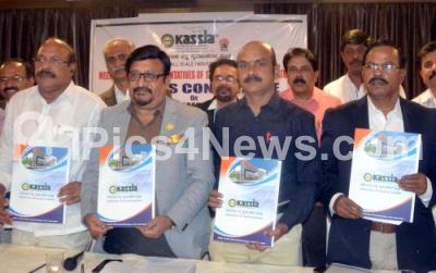 Photo Caption : Basavaraj S Javali, President, KASSIA with AP Reddy, National President, FSME, India, Gnasekaran, Joint Secretary TANSTIA and others during a press conference for demanding MSMEs of Southern States reliefs from Govt of India, press conference held at a private hotel, in Bengaluru on Monday 3rd December 2018