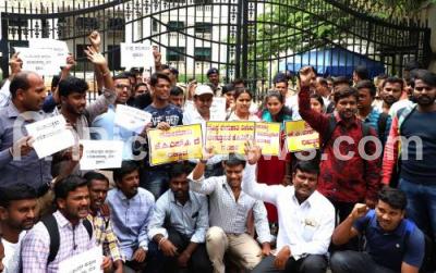 Photo Caption : KPSC candidates staging protest in front of KPSC office to fulfill their demands, in Bengaluru on Tuesday 4th December 2018