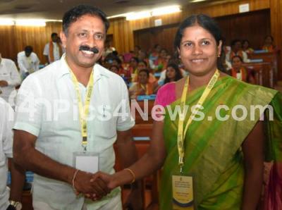 Newly elected Deputy Mayor Bhadregowda being greeted by Mayor Gangambike Mallikarjuna at BBMP, in Bengaluru on Wednesday 5th December 2018
