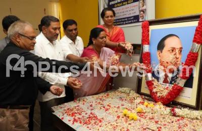Photo Caption : R Mohan Raj, State President Republican Party of India, with Dr Chandra Prasad, Prof Kavalamma and others floral tribute to the portrait of Dr BR Ambedkar, on the occasion of death anniversary, during a seminar at UVCE Conference Hall, KR Circle, in Bengaluru on Thursday 6th December 2018