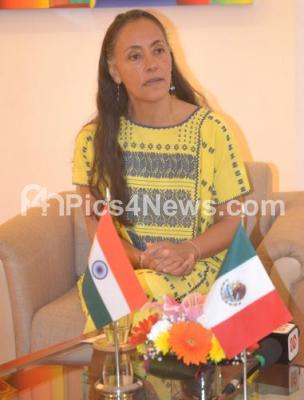 Photo Caption : Melba Pria, Mexico Ambassador to India, seen addressing a press conference during the opening of the Mexico consulate office at Lavelle Road, in Bengaluru on Friday 7th December 2018