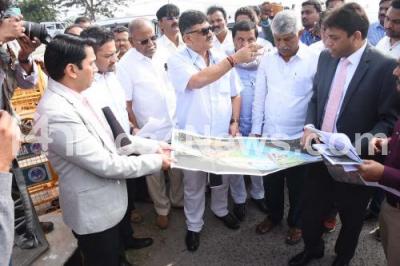 Event Description : Water Resources Minister DK Shivakumar with Sub Committee, comprising members from Engineers Association and others inspected the KRS Dam for the development of Brindavan Gardens in KRS Reservoir on the lines of Disneyland, in Mysuru on Saturday 8th December 2018