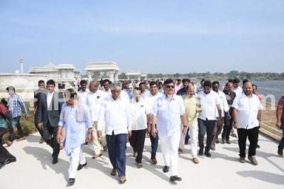 Water Resources Minister DK Shivakumar with Sub Committee, comprising members from Engineers Association and others inspected the KRS Dam for the development of Brindavan Gardens in KRS Reservoir on the lines of Disneyland, in Mysuru on Saturday 8th December 2018