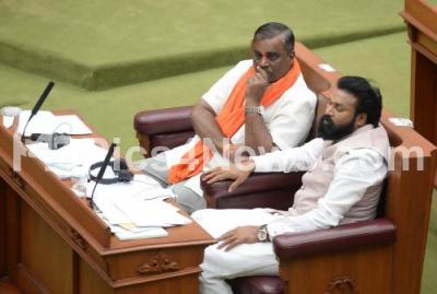 Photo Caption : BJP MLAs Somashekar Reddy and Sriramulu seen during Assembly Session at Suvarna Soudha, in Belagavi on Wednesday 12th December 2018
