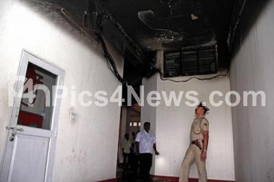 Photo Caption : Fire in Kalagrama at Mallathahalli, due to short circuit in audio management room, in Bengaluru on Thursday 13th December 2018