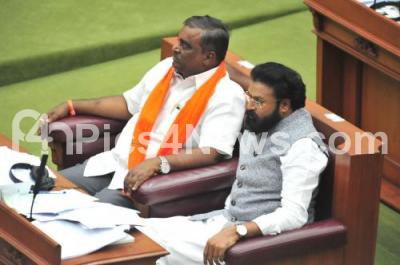 Photo Caption : BPJ MLAs Sriramulu and Somashekar Reddy during Assembly Session at Suvarna Soudha, in Belagavi on Friday 14th December 2018