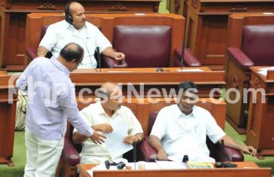 Photo Caption : Minister Sa Ra Mahesh and MLA Satish Jarakiholi during Assembly Session at Suvarna Soudha, in Belagavi on Friday 14th December 2018