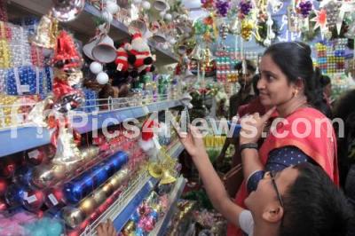 Photo Caption : Christians shopping for the upcoming Christmas Festival at a market, in Bengaluru on Sunday 16th December 2018