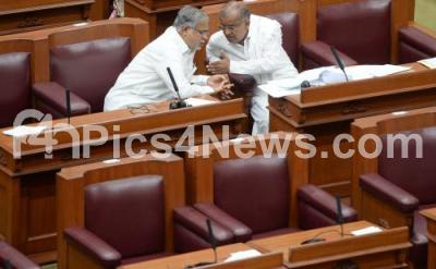 Photo Caption : Minister GT Devegowda and BJP MLA Suresh Kumar during Assembly Session at Suvarna Soudha, in Belagavi on Tuesday 18th December 2018