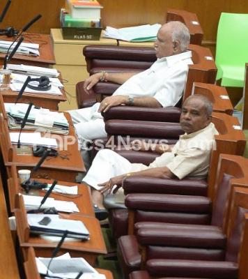 Photo Caption : Assembly opposition leader B S Yeddyurappa and BJP MLA Umesh Katti seen during Assembly Session at Suvarna Soudha , in Belagavi on Wednesday 19th December 2018