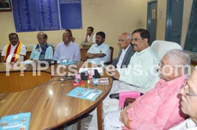 Photo Caption : Dr Manu Baligar, president Kannada Sahitya Parishat, with Chandrashekhar Kambar, Writer Siddalingaiah and other Karnataka prominent leaders and writers seen at a meeting on language issue in primary schools at Kannada Sahitya Parishat, in Bengaluru on Wednesday 19th December 2018