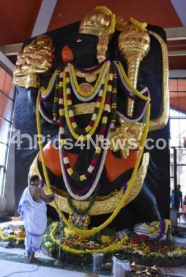 Photo Caption : Priest performing pooja to Lord Hanuman at Hanuman Temple, Mahalakshmi Layout, on the occasion of Hanuman Jayanti, in Bengaluru on Thursday 20th December 2018