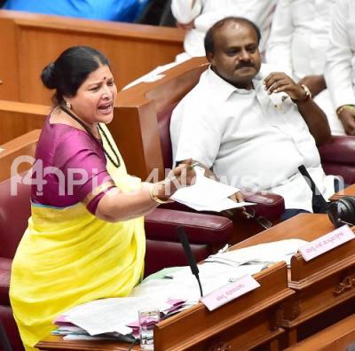 Photo Caption : Minister Jayamala and CM HD Kumarswamy during Council Session at Suvarna Soudha, in Belagavi on Thursday 20th December 2018