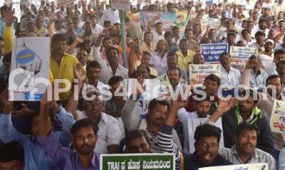 Photo Caption : Cable Operators protesting against new TRAI price act, the protest was held at Freedom Park, in Bengaluru on Friday 21st December 2018